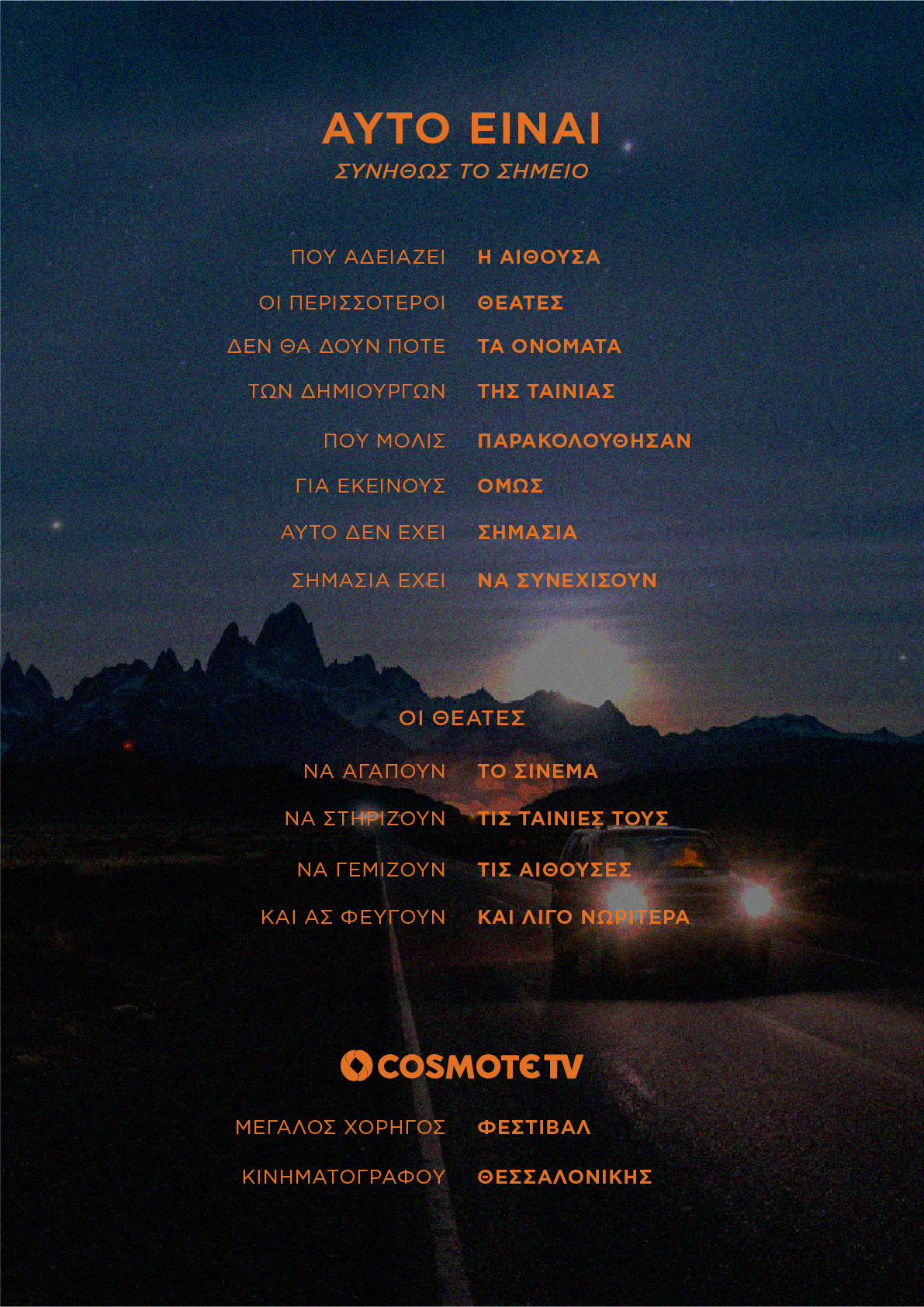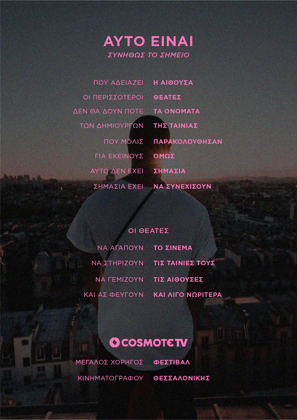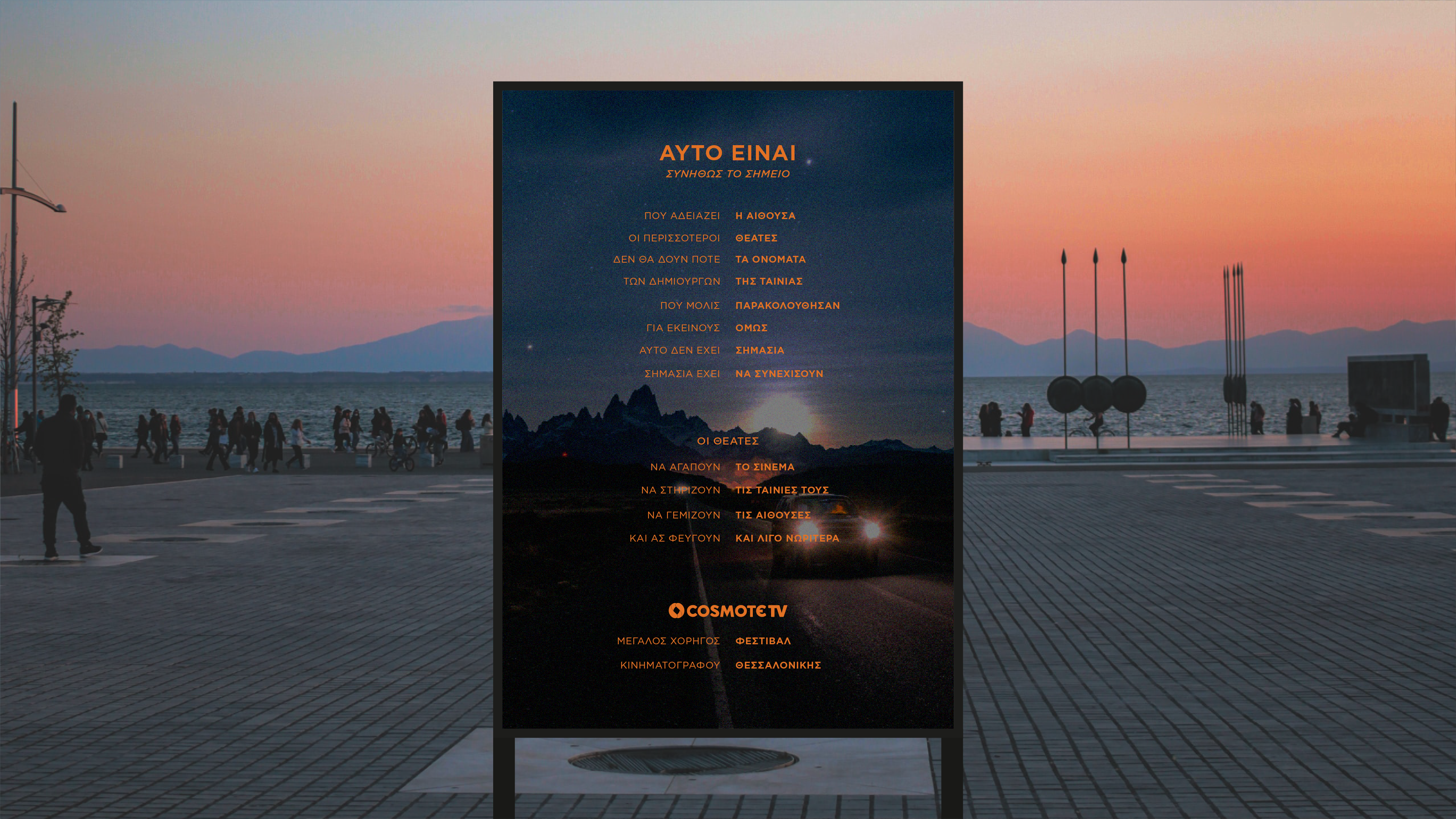 Every year, COSMOTE TV sponsors the Thessaloniki International Film Festival and wanted a strong creative presence across the city.